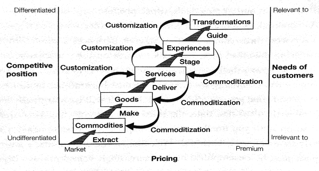 Joe Pine laat in zijn ‘progression of economic value model’ zien dat transformaties het vijfde en hoogste economische aanbod vormen, na goederen, diensten en ervaringen (boek: The Experience Economy). Wanneer een ervaring zo sterk wordt gepersonaliseerd dat zij exact aansluit op de doelen en context van één persoon of organisatie, verandert de ervaring onvermijdelijk de klant zelf. Het merk fungeert dan als gids op weg naar de ambitie van de klant; de klant wordt het ‘eindresultaat’.
